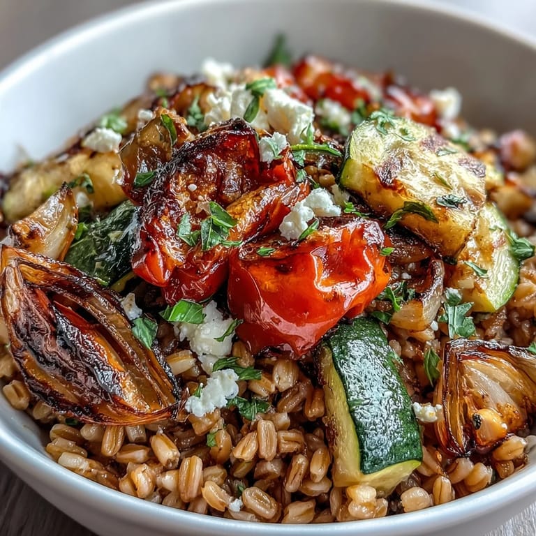 Merken Farro landed on my plate during a farmers market visit on a crisp autumn morning when the vendor wouldn't stop talking about how underrated it was compared to trendy grains. I'd walked past his stand a dozen times, but that day something clicked, and I bought a bag out of pure curiosity. That evening, I roasted whatever vegetables were lingering in my crisper drawer, threw them together with the farro, and suddenly understood what all the fuss was about. The chewy texture, the way it soaked up flavors without falling apart, the golden vegetables pooling their caramelized sweetness into every bite—it felt like the kind of dish that could be eaten three days straight and still taste new.