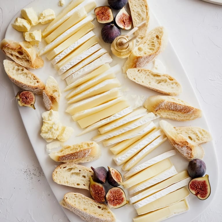 - 150 g Brie-Käse, in Scheiben geschnitten und gefächert: Der Brie ist der Star dieser Platte; seine cremige Textur und sein mildes Aroma gleichen die reicheren Sorten aus.
