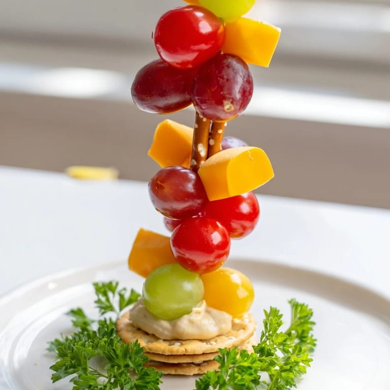 Diese bunten Snacks kombinieren Trauben, Kirschtomaten, würzigen Käse und Mozzarella, kunstvoll auf Salzstangen aufgereiht. Die Zubereitung dauert nur 20 Minuten, ohne Kochen, perfekt für Kinderfeste oder Picknicks. Mit frischen Kräutern und cremigem Dip lassen sich abwechslungsreiche Geschmackserlebnisse kreieren. Ideal als gesunder, unkomplizierter Snack, der durch seine Farbvielfalt und Form viel Freude bereitet.