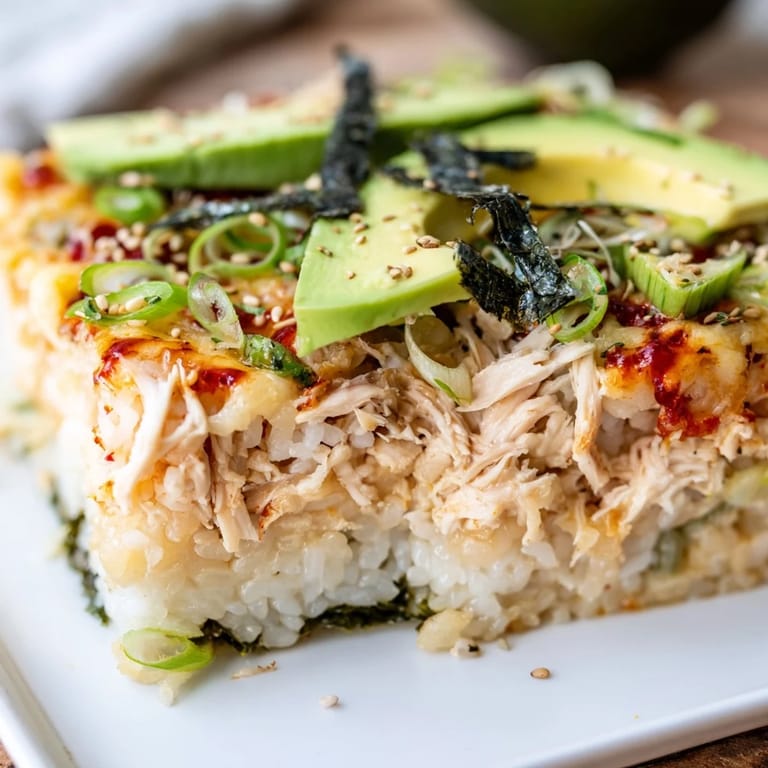Merken Die erste Nacht, die ich dieses Gericht machte, war eigentlich ein Unfall – ich hatte Sushi-Reis übrig und eine Portion Hähnchen, und irgendwie begann ich, es zu schichten wie einen Auflauf, anstatt es in Nori-Rollen zu wickeln. Mein Partner roch das goldene Käse-Aroma aus dem Ofen und fragte, was zum Teufel ich dort tat, aber als wir die erste Gabel voll probten, wurde klar, dass dieses kreative Missgeschick etwas Besonderes war. Es war alle würzigen, cremigen, knusprigen Sushi-Gefühle, aber warm vom Ofen und vollkommen mühelos zu servieren. Seitdem ist dies mein stilles Go-to-Rezept, wenn ich Familie einlade.