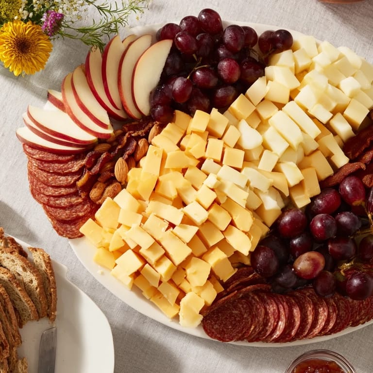 - Käse: 150 g gereifter Cheddar, gewürfelt, 150 g Gouda, in Scheiben, 100 g Brie, in Spalten