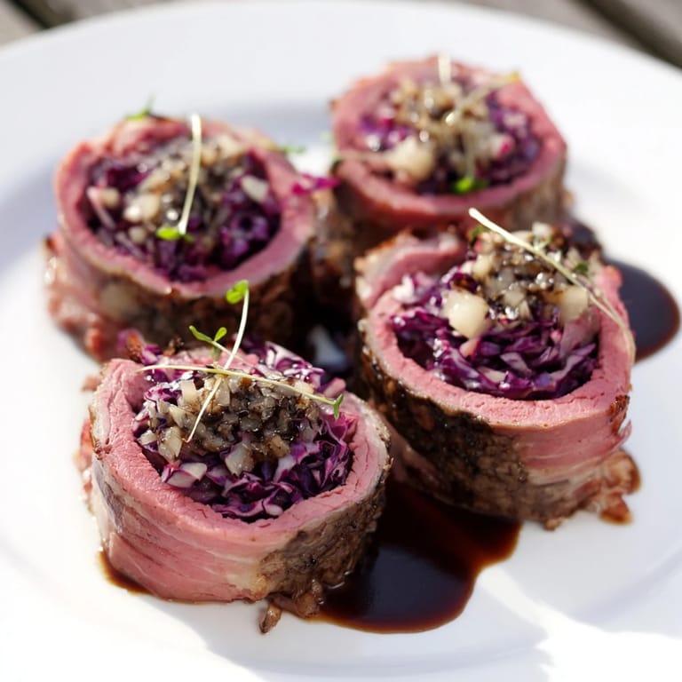 Ich habe dieses Rezept zum ersten Mal zubereitet, um Gäste zu beeindrucken, und die Kombination aus Sauerbraten-Aromen und Rotkohlfüllung war ein voller Erfolg.