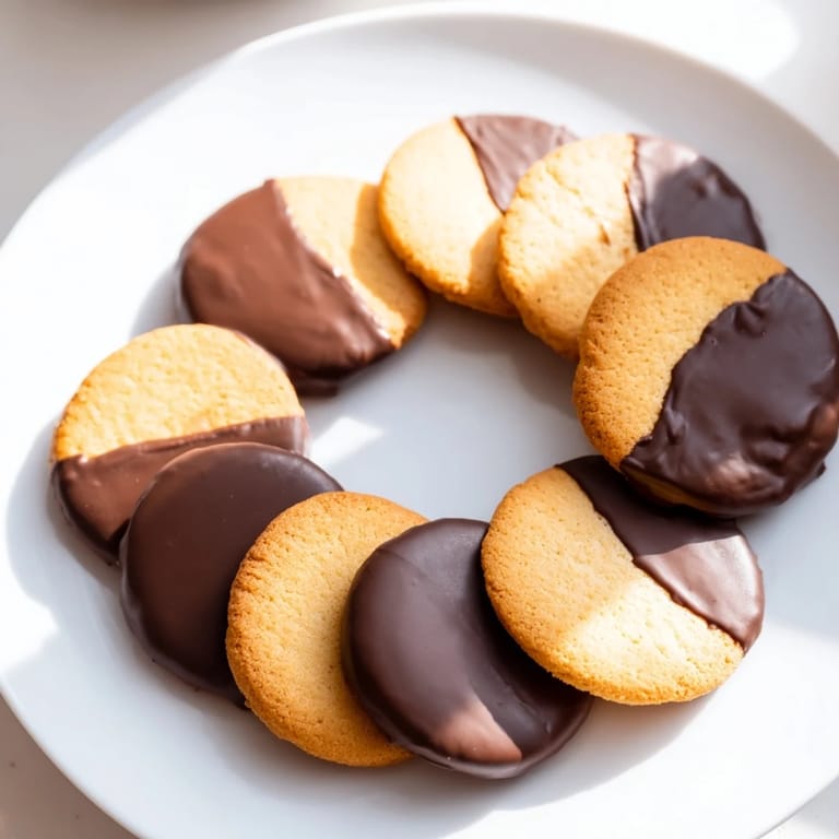 Merken Leichte, knusprige Vanillewaffeln, die in reichhaltige Schokolade getaucht werden – eine einfache, köstliche Leckerei, perfekt für jeden Anlass.
