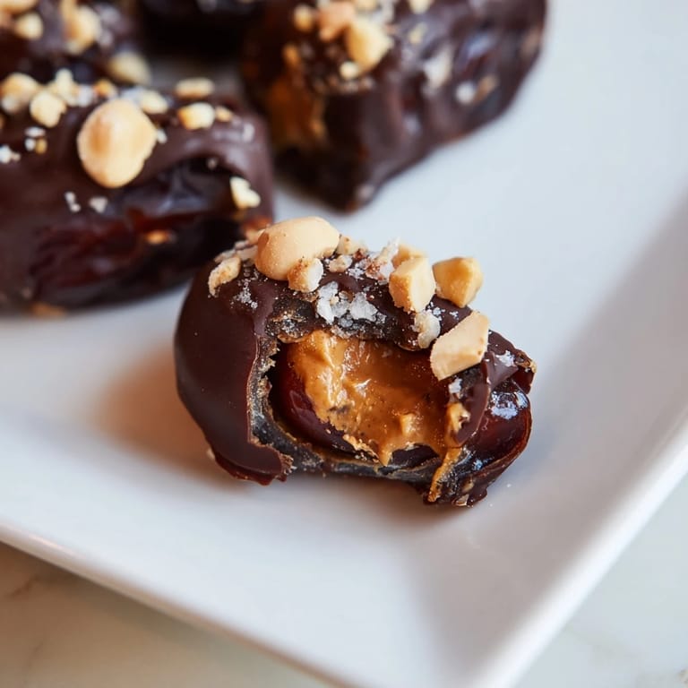 Merken Ich entdeckte dieses Rezept an einem zufälligen Sonntagnachmittag, als ich verzweifelt versuchte, die letzten Medjool-Datteln aufzubrauchen, bevor sie zu trocken wurden. Während ich sie halbierte, kam mir ein verrückter Gedanke: Was wäre, wenn ich sie in etwas Schokoladiges und Erdnussiges verwandeln könnte, das wie ein Snickers schmeckt, aber ohne den ganzen Aufwand? Zwei Stunden später hatte ich ein Tablett mit glänzender, knackiger Schokolade vor mir, und ich konnte nicht aufhören zu naschen. Dieses No-Bake-Wunderwerk wurde schnell zu meinem geheimen Favoriten für Momente, wenn ich etwas Süßes brauchte, das wirklich aussieht, als hätte ich mich angestrengt.