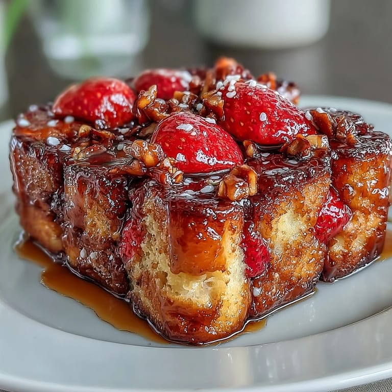 Merken There's something about spring mornings that makes you want to gather people around a table, and this strawberry French toast bake has become my answer to that urge. I discovered it years ago when a friend brought it to a Easter brunch, and watching everyone go back for seconds while the morning light streamed through the windows felt like pure magic. The brioche soaks up the custard until it's impossibly tender, the strawberries bleed their color throughout, and somehow it feels elegant without requiring you to stand over a stove flipping individual slices. Now I make it whenever I need to feed a crowd without losing my mind beforehand.