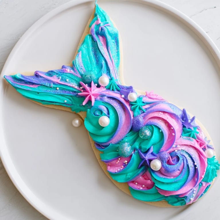Merken Verspielte, farbenfrohe Leckereien, inspiriert vom Ozean, diese Meerjungfrauenschwanz-Süßigkeiten kombinieren weiche Zuckerplätzchen mit schimmerndem Buttercreme und Zuckerperlen – ein magisches Dessert, perfekt für Partys oder besondere Anlässe.
