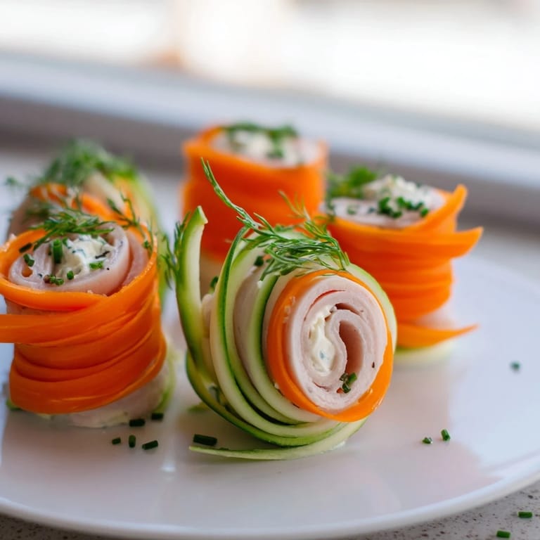 Merken Es war an einem sonnigen Wochenendnachmittag, als ich versuchte, etwas Neues für ein kleines Treffen mit Freunden zu erfinden – etwas, das elegant aussah, aber nicht stundenlang Vorbereitungszeit brauchte. Ich stand in meiner Küche und betrachtete die leuchtend orangefarbenen Karotten und die frischen Gurken, die ich gerade gekauft hatte, und hatte plötzlich diesen Moment der Klarheit: Was wäre, wenn ich sie in lange, dünne Bänder schneiden und um rauchigen Putenschinken wickeln würde? Das Ergebnis war so visuell beeindruckend, dass meine Gäste fragten, ob ich das in einem gehobenen Restaurant gelernt hatte – obwohl es nur ein improvisertes Spiel mit einem Sparschäler war.