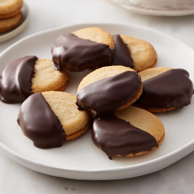 Merken Leichte, knusprige Vanillewaffeln, die in reichhaltige Schokolade getaucht werden – eine einfache, köstliche Leckerei, perfekt für jeden Anlass.